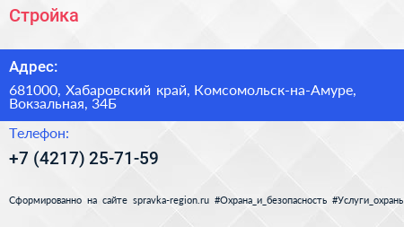 Стройка по адресу 681000, Хабаровский край, Комсомольск-на-Амуре, Вокзальная, 34Б в дальнейшем Организация, размещена в следующих категориях: