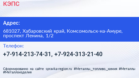 КЭПС по адресу 681027, Хабаровский край, Комсомольск-на-Амуре, проспект Ленина, 1/2 в дальнейшем Организация, размещена в следующих категориях: