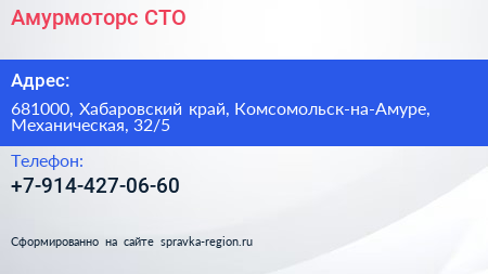 Амурмоторс, СТО по адресу 681000, Хабаровский край, Комсомольск-на-Амуре, Механическая, 32/5 в дальнейшем Организация, размещена в следующих категориях: