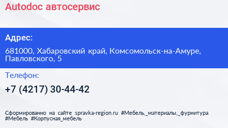 Autodoc, автосервис по адресу 681000, Хабаровский край, Комсомольск-на-Амуре, Павловского, 5 в дальнейшем Организация, размещена в следующих категориях: