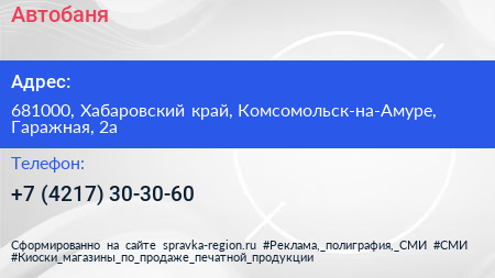 Автобаня по адресу 681000, Хабаровский край, Комсомольск-на-Амуре, Гаражная, 2а в дальнейшем Организация, размещена в следующих категориях: