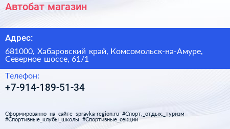Автобат, магазин по адресу 681000, Хабаровский край, Комсомольск-на-Амуре, Северное шоссе, 61/1 в дальнейшем Организация, размещена в следующих категориях: