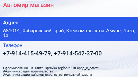 Автомир, магазин по адресу 681014, Хабаровский край, Комсомольск-на-Амуре, Лазо, 1а в дальнейшем Организация, размещена в следующих категориях: