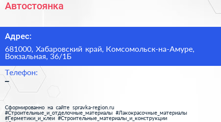 Адрес: Хабаровский край, Комсомольск-на-Амуре, Вокзальная, 32/1