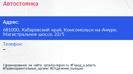 Автостоянка по адресу 681000, Хабаровский край, Комсомольск-на-Амуре, Магистральное шоссе, 22/5 в дальнейшем Организация, размещена в следующих категориях: