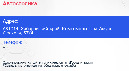 Автостоянка по адресу 681014, Хабаровский край, Комсомольск-на-Амуре, Орехова, 57/4 в дальнейшем Организация, размещена в следующих категориях: