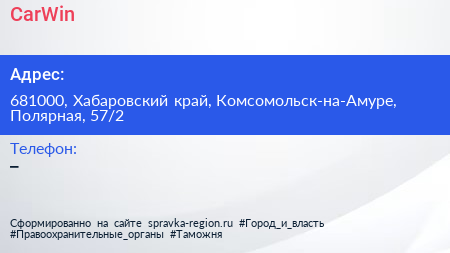 CarWin по адресу 681000, Хабаровский край, Комсомольск-на-Амуре, Полярная, 57/2 в дальнейшем Организация, размещена в следующих категориях: