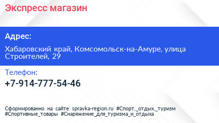 Экспресс, магазин по адресу Хабаровский край, Комсомольск-на-Амуре, улица Строителей, 29 в дальнейшем Организация, размещена в следующих категориях: