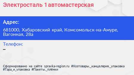 Электросталь №1, автомастерская по адресу 681000, Хабаровский край, Комсомольск-на-Амуре, Вагонная, 28а в дальнейшем Организация, размещена в следующих категориях: