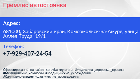 Гремлес, автостоянка по адресу 681000, Хабаровский край, Комсомольск-на-Амуре, улица Аллея Труда, 19/1 в дальнейшем Организация, размещена в следующих категориях: