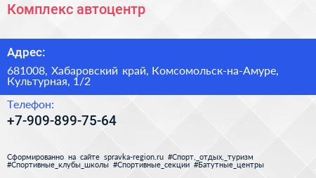 Комплекс, автоцентр по адресу 681008, Хабаровский край, Комсомольск-на-Амуре, Культурная, 1/2 в дальнейшем Организация, размещена в следующих категориях: