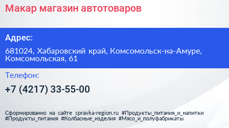 Макар, магазин автотоваров по адресу 681024, Хабаровский край, Комсомольск-на-Амуре, Комсомольская, 61 в дальнейшем Организация, размещена в следующих категориях: