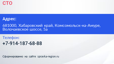 СТО по адресу 681000, Хабаровский край, Комсомольск-на-Амуре, Волочаевское шоссе, 5а в дальнейшем Организация, размещена в следующих категориях: