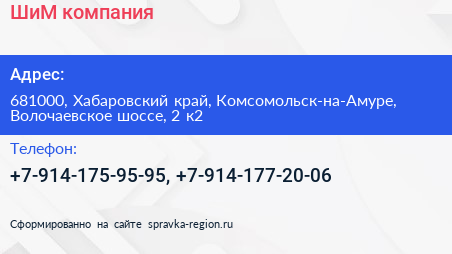 ШиМ, компания по адресу 681000, Хабаровский край, Комсомольск-на-Амуре, Волочаевское шоссе, 2 к2 в дальнейшем Организация, размещена в следующих категориях: