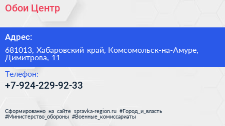 Обои-Центр по адресу 681013, Хабаровский край, Комсомольск-на-Амуре, Димитрова, 11 в дальнейшем Организация, размещена в следующих категориях: