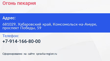 Огонь, пекарня по адресу 681029, Хабаровский край, Комсомольск-на-Амуре, проспект Победы, 59 в дальнейшем Организация, размещена в следующих категориях: