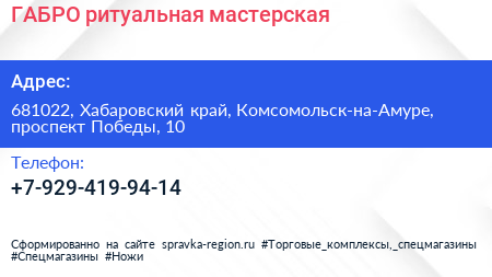 ГАБРО, ритуальная мастерская по адресу 681022, Хабаровский край, Комсомольск-на-Амуре, проспект Победы, 10 в дальнейшем Организация, размещена в следующих категориях: