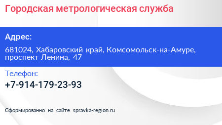 Городская метрологическая служба по адресу 681024, Хабаровский край, Комсомольск-на-Амуре, проспект Ленина, 47 в дальнейшем Организация, размещена в следующих категориях:
