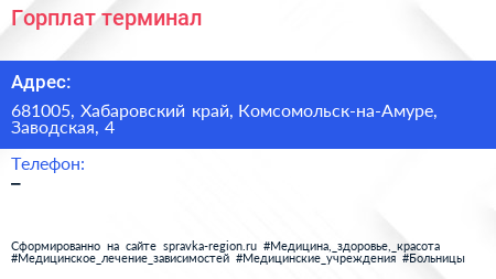 Горплат, терминал по адресу 681005, Хабаровский край, Комсомольск-на-Амуре, Заводская, 4 в дальнейшем Организация, размещена в следующих категориях: