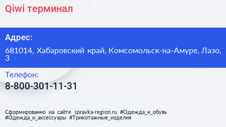 Qiwi, терминал по адресу 681014, Хабаровский край, Комсомольск-на-Амуре, Лазо, 3 в дальнейшем Организация, размещена в следующих категориях: