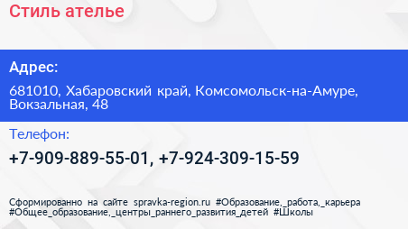 Стиль, ателье по адресу 681010, Хабаровский край, Комсомольск-на-Амуре, Вокзальная, 48 в дальнейшем Организация, размещена в следующих категориях: