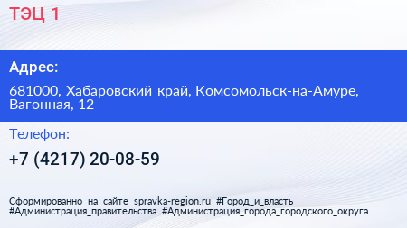 ТЭЦ-1 по адресу 681000, Хабаровский край, Комсомольск-на-Амуре, Вагонная, 12 в дальнейшем Организация, размещена в следующих категориях: