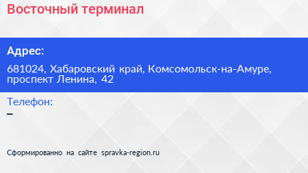 Восточный, терминал по адресу 681024, Хабаровский край, Комсомольск-на-Амуре, проспект Ленина, 42 в дальнейшем Организация, размещена в следующих категориях: