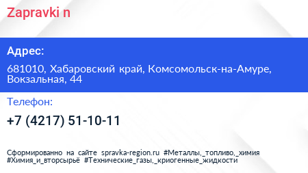 Zapravki`n по адресу 681010, Хабаровский край, Комсомольск-на-Амуре, Вокзальная, 44 в дальнейшем Организация, размещена в следующих категориях: