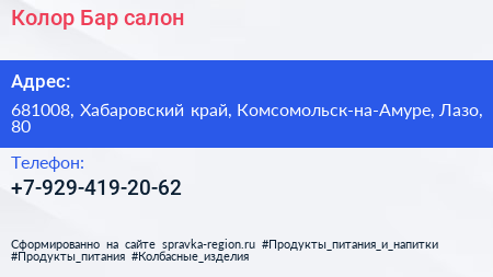 Колор Бар, салон по адресу 681008, Хабаровский край, Комсомольск-на-Амуре, Лазо, 80 в дальнейшем Организация, размещена в следующих категориях: