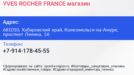 YVES ROCHER FRANCE, магазин по адресу 681010, Хабаровский край, Комсомольск-на-Амуре, проспект Ленина, 56 в дальнейшем Организация, размещена в следующих категориях: