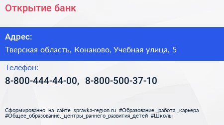 Открытие, банк по адресу Тверская область, Конаково, Учебная улица, 5 в дальнейшем Организация, размещена в следующих категориях: