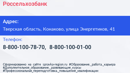 Россельхозбанк по адресу Тверская область, Конаково, улица Энергетиков, 41 в дальнейшем Организация, размещена в следующих категориях: