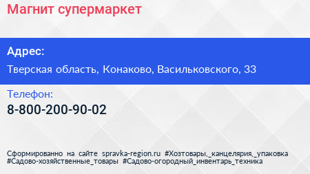Магнит, супермаркет по адресу Тверская область, Конаково, Васильковского, 33 в дальнейшем Организация, размещена в следующих категориях: