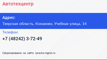 Автотехцентр по адресу Тверская область, Конаково, Учебная улица, 14 в дальнейшем Организация, размещена в следующих категориях: