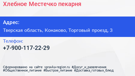 Хлебное Местечко, пекарня по адресу Тверская область, Конаково, Торговый проезд, 3 в дальнейшем Организация, размещена в следующих категориях: