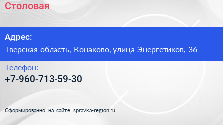 Столовая по адресу Тверская область, Конаково, улица Энергетиков, 36 в дальнейшем Организация, размещена в следующих категориях: