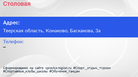 Столовая по адресу Тверская область, Конаково, Баскакова, 3а в дальнейшем Организация, размещена в следующих категориях: