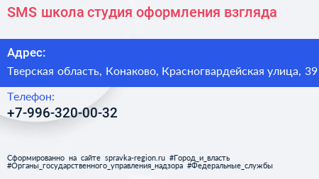 SMS, школа-студия оформления взгляда по адресу Тверская область, Конаково, Красногвардейская улица, 39 в дальнейшем Организация, размещена в следующих категориях: