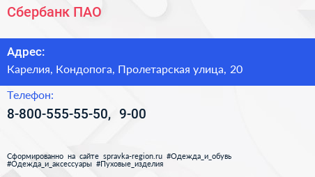 Сбербанк, ПАО по адресу Карелия, Кондопога, Пролетарская улица, 20 в дальнейшем Организация, размещена в следующих категориях: