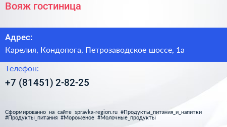Вояж, гостиница по адресу Карелия, Кондопога, Петрозаводское шоссе, 1а в дальнейшем Организация, размещена в следующих категориях: