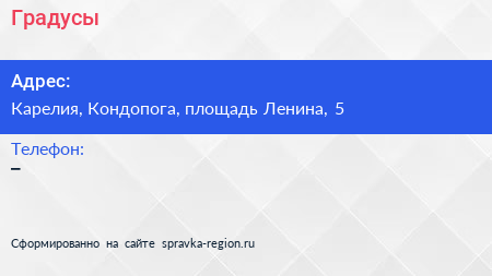 Градусы по адресу Карелия, Кондопога, площадь Ленина, 5 в дальнейшем Организация, размещена в следующих категориях: