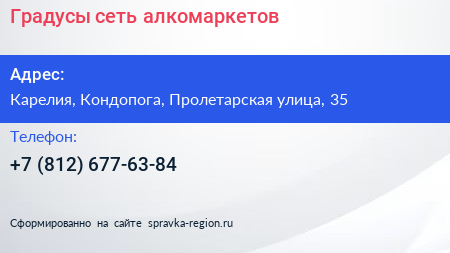 Градусы, сеть алкомаркетов по адресу Карелия, Кондопога, Пролетарская улица, 35 в дальнейшем Организация, размещена в следующих категориях: