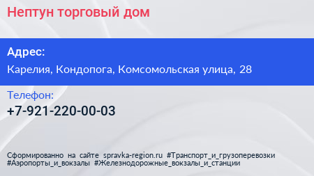 Нептун, торговый дом по адресу Карелия, Кондопога, Комсомольская улица, 28 в дальнейшем Организация, размещена в следующих категориях:
