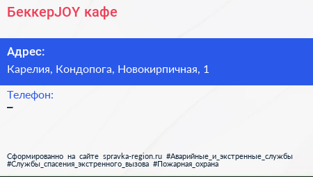 БеккерJOY, кафе по адресу Карелия, Кондопога, Новокирпичная, 1 в дальнейшем Организация, размещена в следующих категориях: