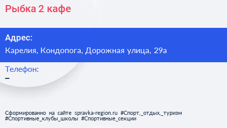 Рыбка 2, кафе по адресу Карелия, Кондопога, Дорожная улица, 29а в дальнейшем Организация, размещена в следующих категориях:
