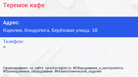 Теремок, кафе по адресу Карелия, Кондопога, Берёзовая улица, 18 в дальнейшем Организация, размещена в следующих категориях:
