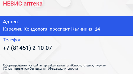 НЕВИС, аптека по адресу Карелия, Кондопога, проспект Калинина, 14 в дальнейшем Организация, размещена в следующих категориях:
