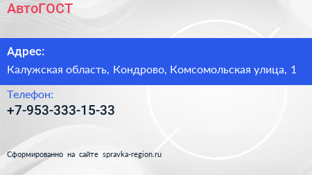 АвтоГОСТ по адресу Калужская область, Кондрово, Комсомольская улица, 1 в дальнейшем Организация, размещена в следующих категориях: