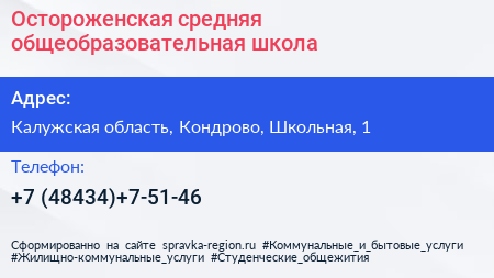 Остороженская средняя общеобразовательная школа по адресу Калужская область, Кондрово, Школьная, 1 в дальнейшем Организация, размещена в следующих категориях: