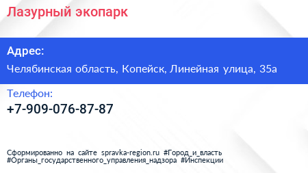 Лазурный, экопарк по адресу Челябинская область, Копейск, Линейная улица, 35а в дальнейшем Организация, размещена в следующих категориях: